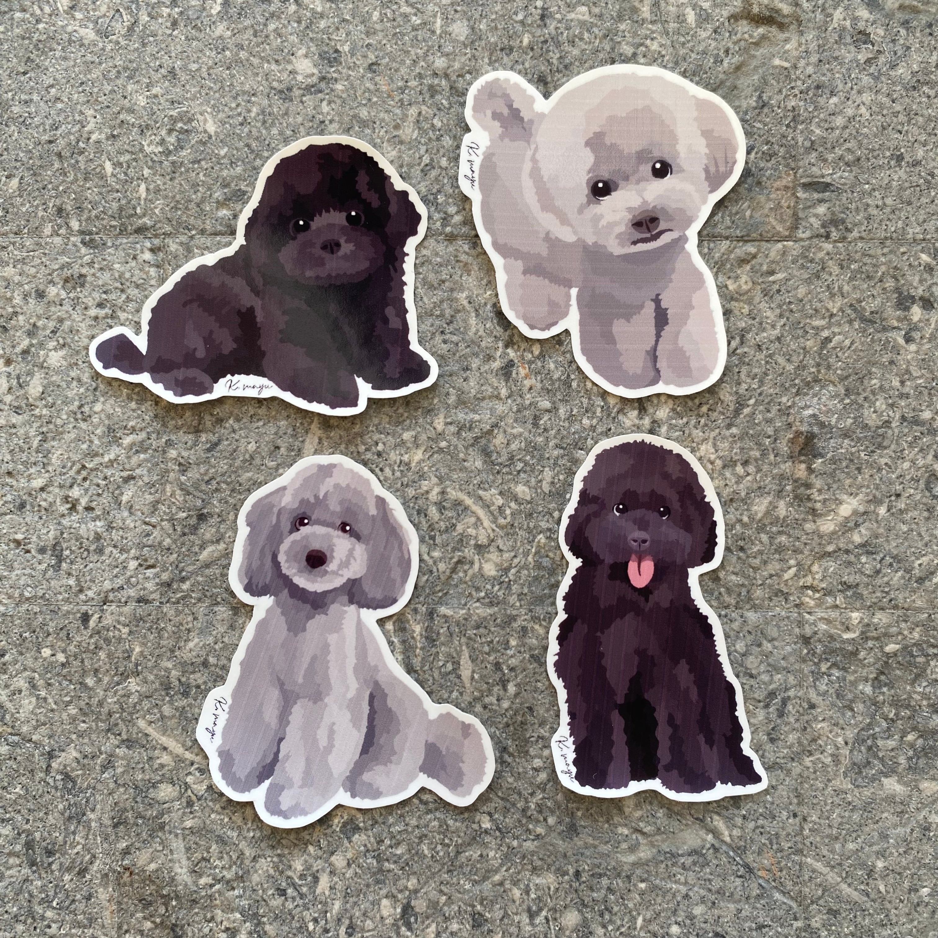 【耐水】TOYPOODLE STICKERS black.silver / トイプードル ブラック・シルバー ステッカー 4枚入